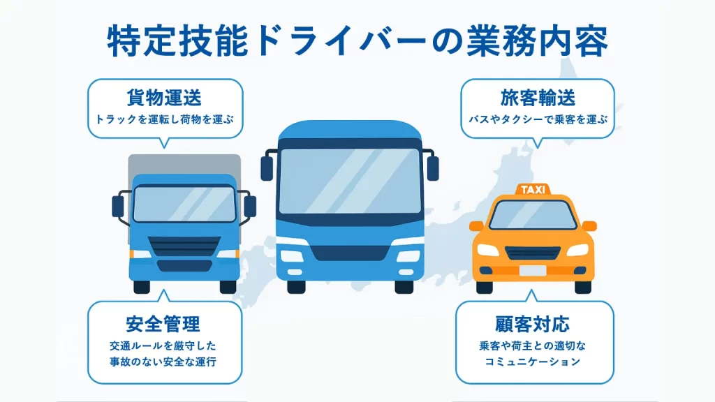 特定技能ドライバーは、自動車運送業において多岐にわたる重要な役割を果たします。