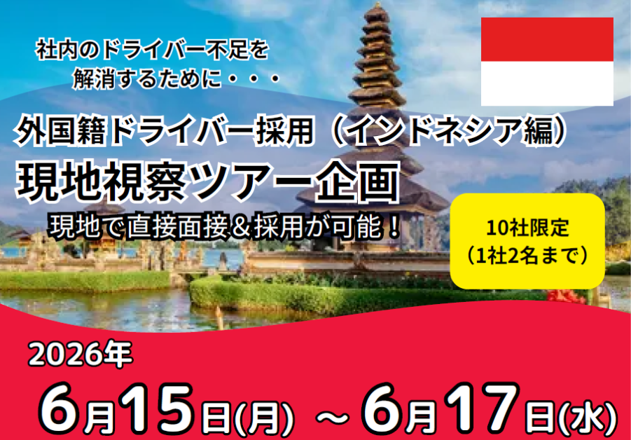 そこで今回、インドネシアでも外国籍ドライバーの採用に向けた現地視察ツアーを開催することが決定いたしました。