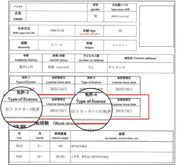 候補者の履歴書を参照して見てみると、若く母国での経験のある人材が実際に日本で就業を希望していることがわかります。