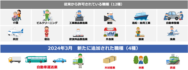 そんな中2024年に新たに自動車運送業分野も追加され、同時に木材産業、林業、鉄道の合計4職種が追加されました。